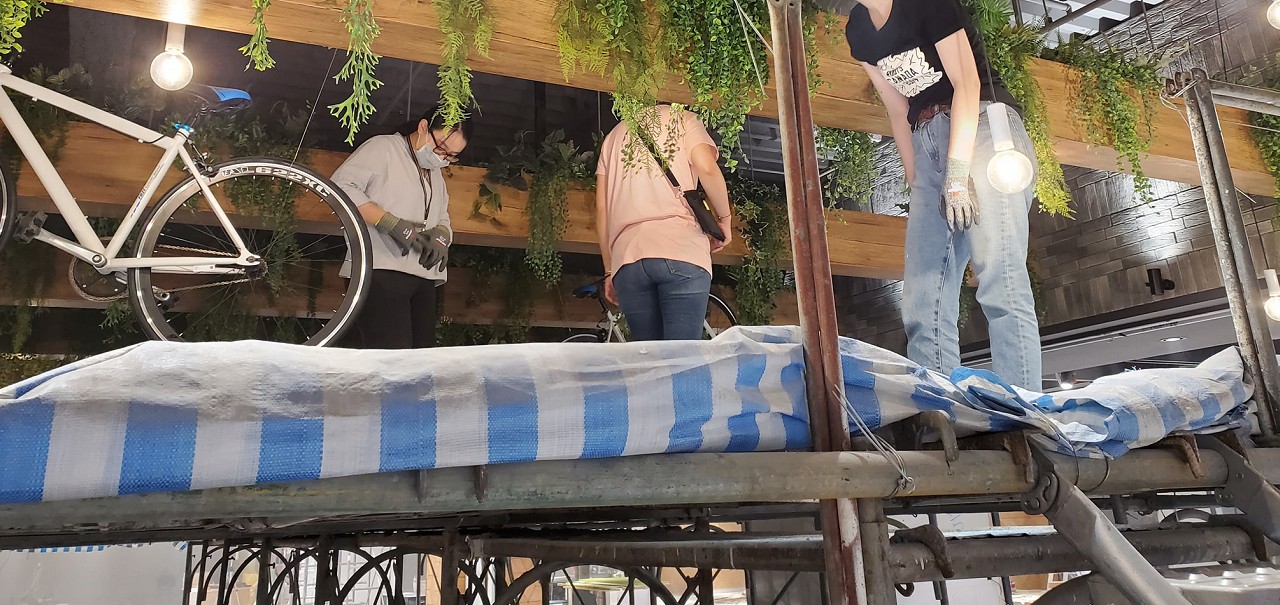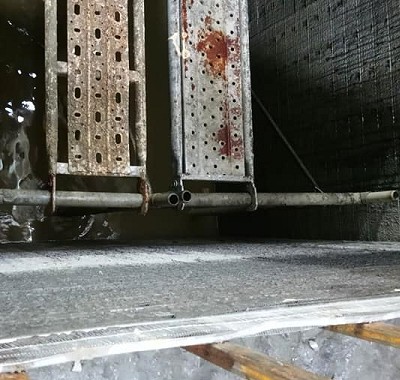 有些地方不能從一樓地面開始搭鷹架,這時候就必須靠三角支撐架從空中打進牆壁,使鷹架能從高空中開始搭起。
